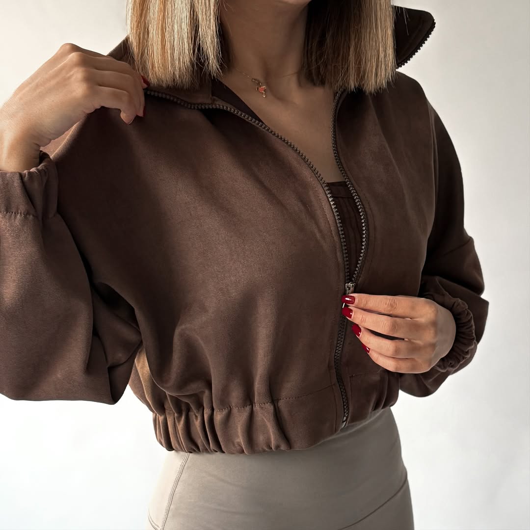 بامبر جکت زنانه رنگ موکا جنس سوئیت