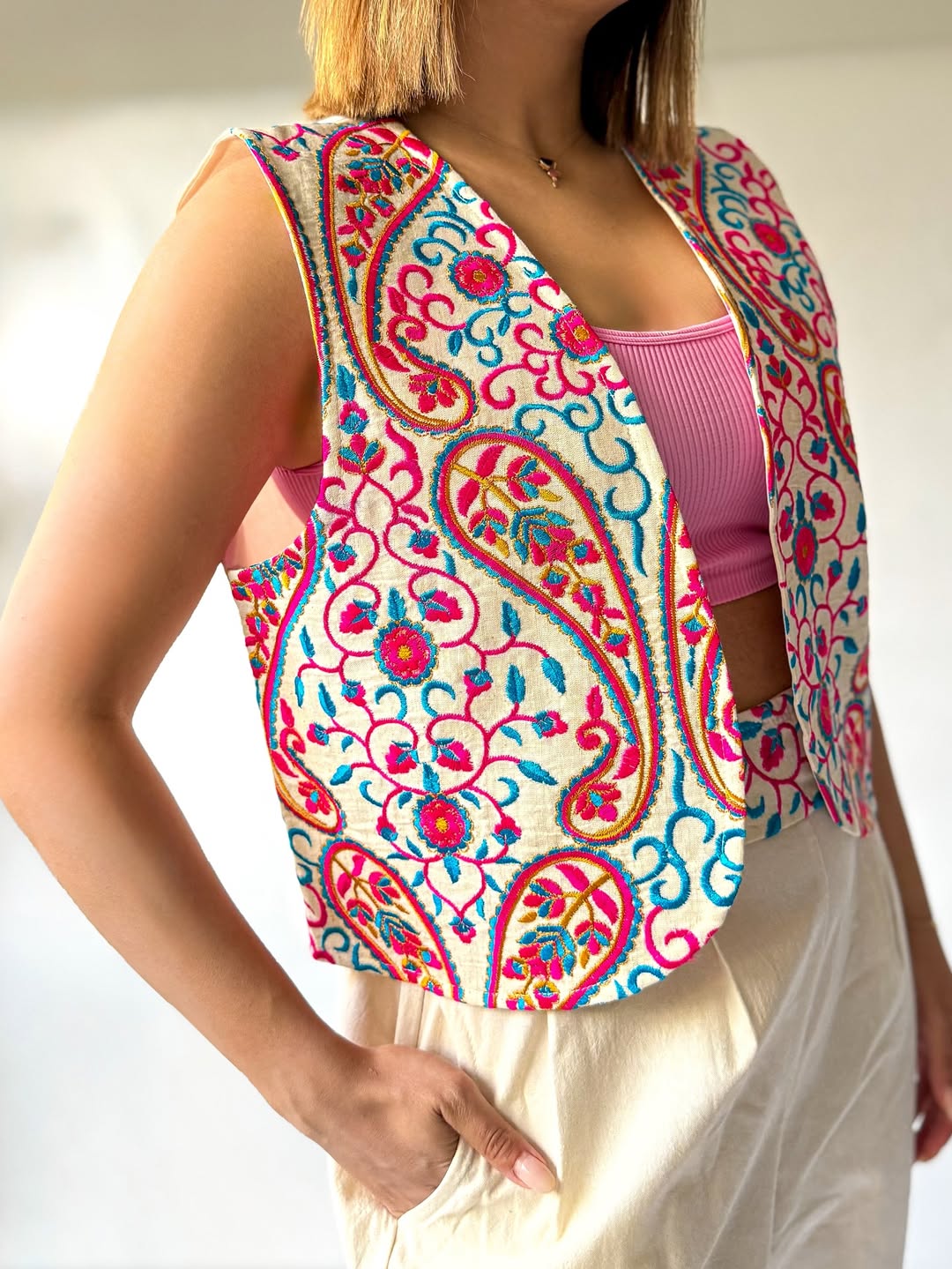 ست جلیقه و شلوار لینن فری سایز