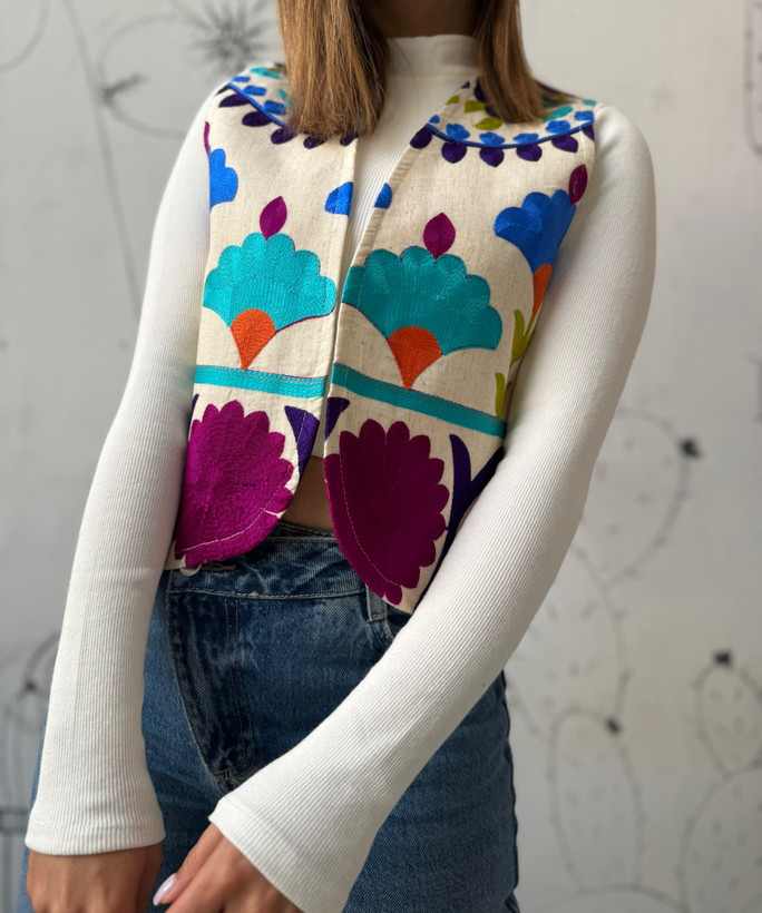 جلیقه لینن بخارادوزی پارچه هندی وارداتی