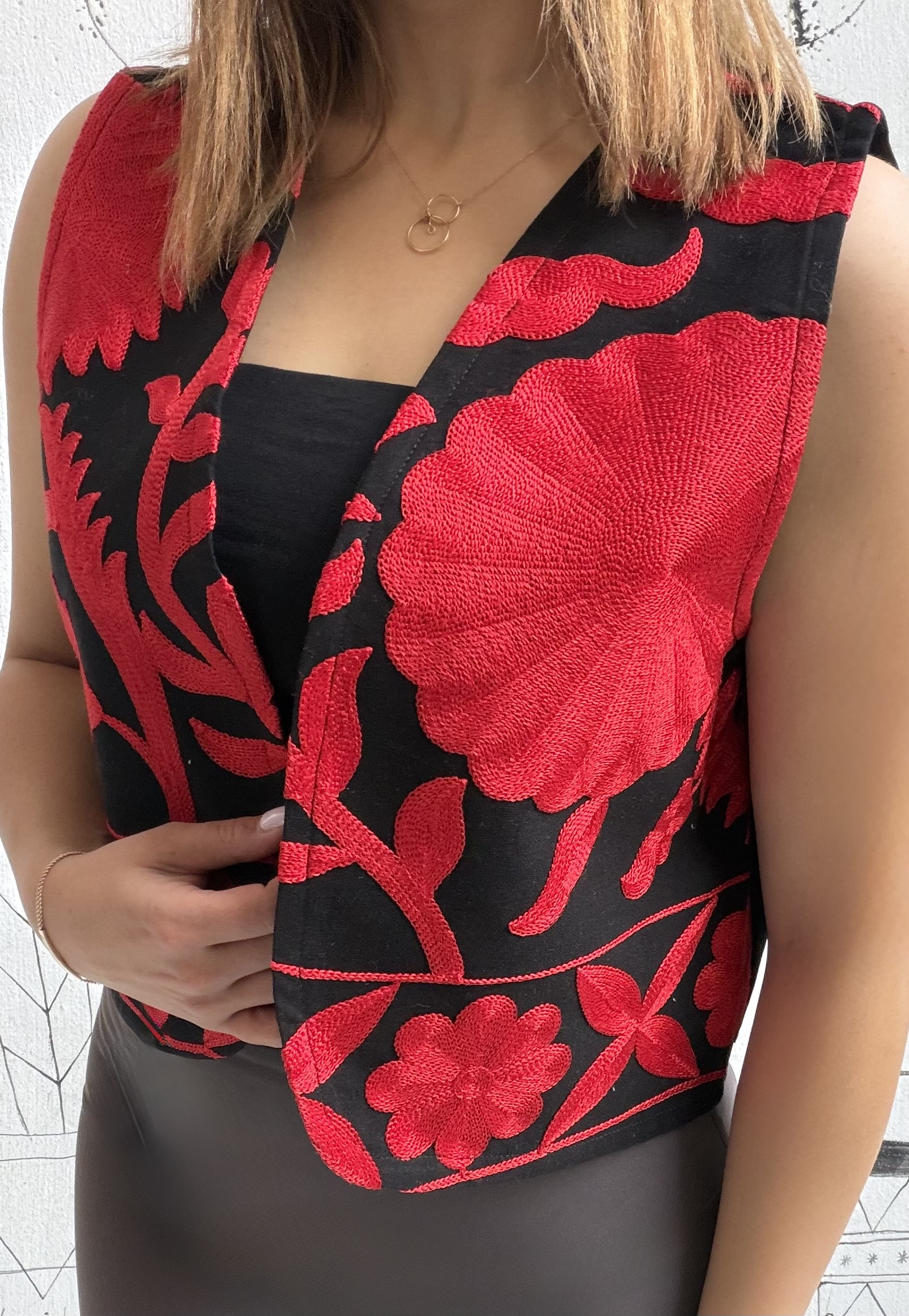 جلیقه لینن سوزندوزی پارچه هندی وارداتی پشت جلیقه ساده جلوی کار لایی کشی شده دور سینه ۱۰۰ س.م ( مناسب سایز ۳۶ تا ۴۰ ) قد : ۴۷ س.م