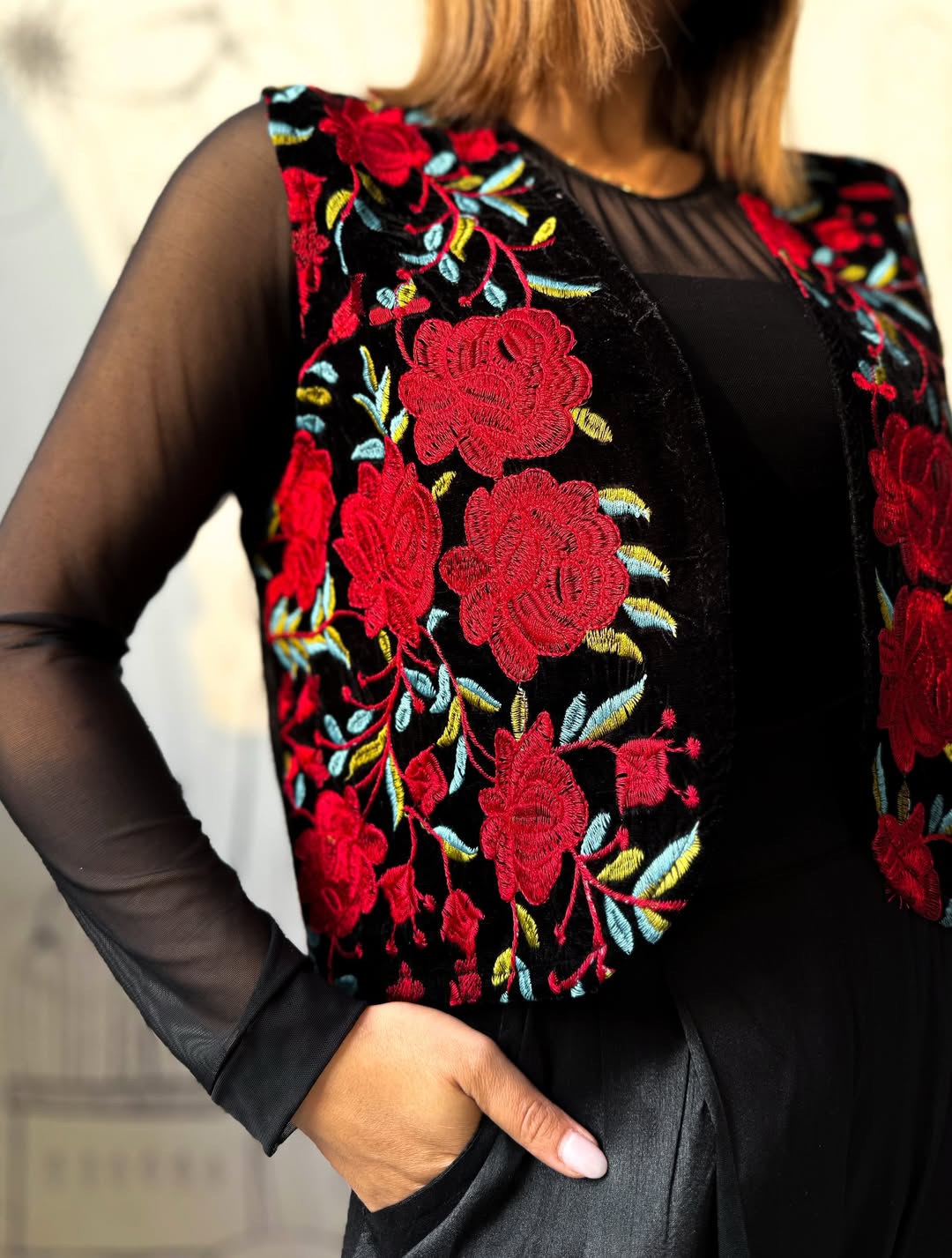 جلیقه مشکی سوزندوزی فری ساز