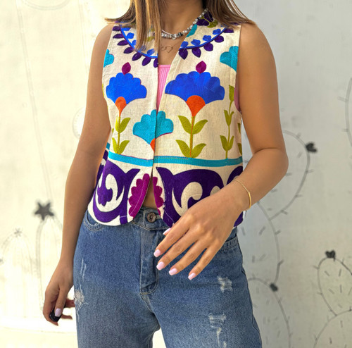 جلیقه سوزندوزی لینن هندی