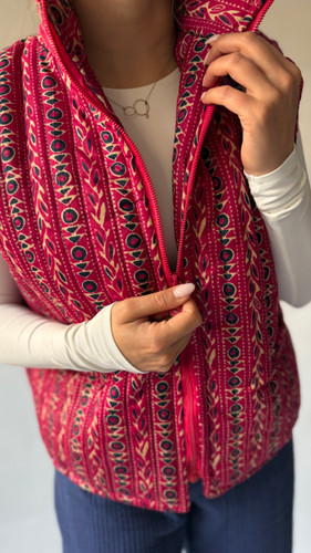 جلیقه لینن بخارا دوزی دورنگ صورتی و آبی